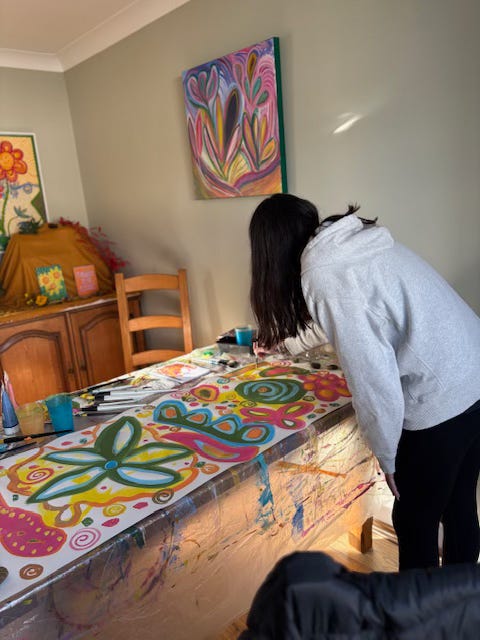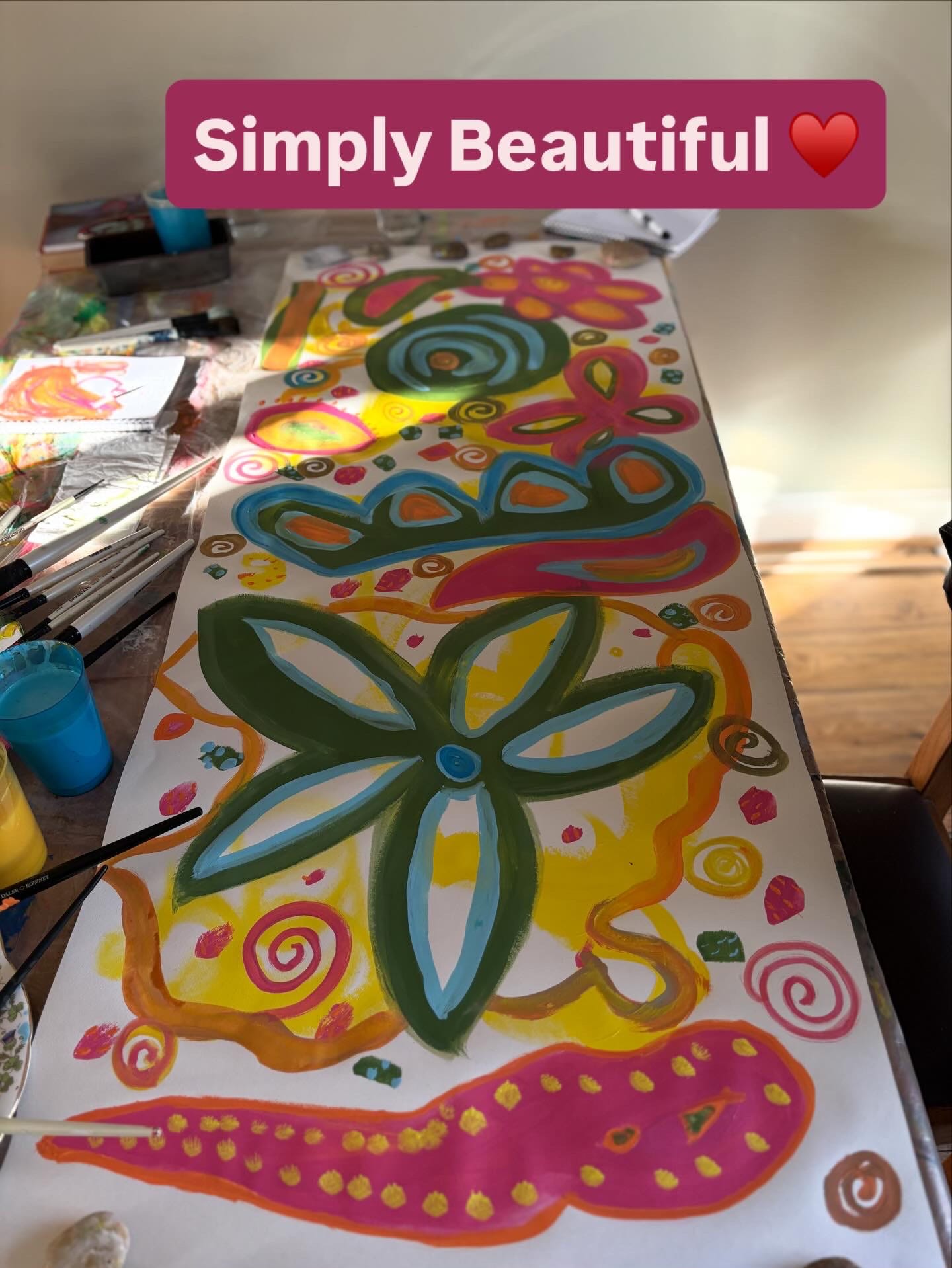 BUT I must say the 1:1 session felt so rewarding. I’ve learnt over time that my role is minimal in each session…when people are given the permission to just be themselves and guided to simply play with the paints, it’s amazing what happens. So many of us are held back by fears of needing to be perfect, overthinking & over-analysing…and if something doesn’t have a clear-cut outcome or purpose (like furthering our career) then we simply won’t do it.